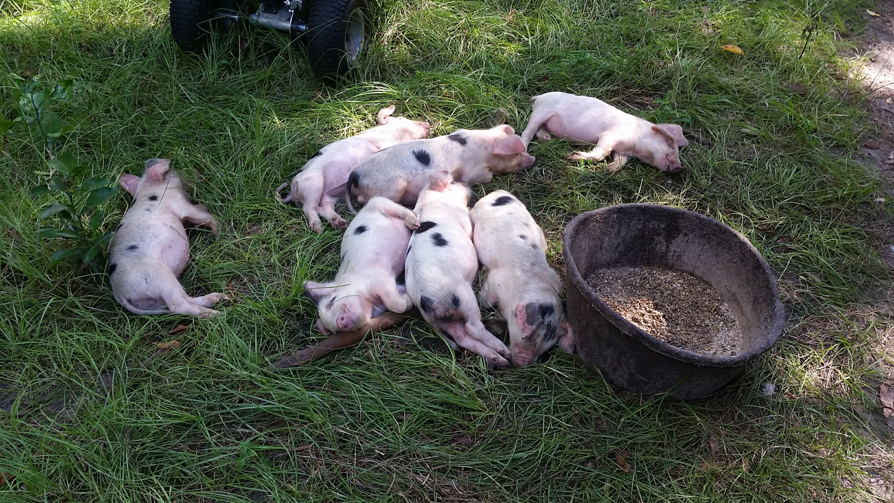 Luckily my friend Karl came out and helped with the actual piglet round up. He was a too surprised by the ungodly loud squealing they make when their hooves leave the ground to catch any, but it was nice to have moral support. They are very, very fast on those short little legs.