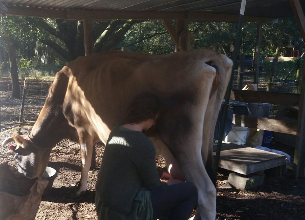 I just went to a friend’s farm a couple days ago to help with a newly calved mama Jersey with a swollen udder. I couldn’t believe the cow just stood in place placidly eating the whole time while we squeezed and massaged her udder. I don’t have cows like that.