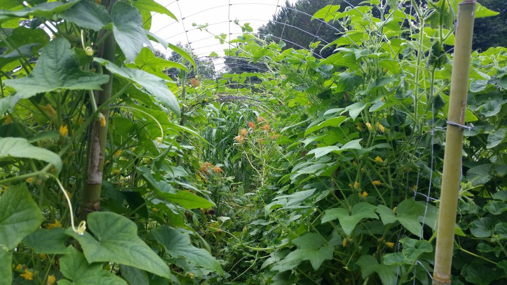 You know, my ideal garden is not much of a landscape at all, but merely a utilitarian vegetable garden, with everything in neat rows and squares. The fruit trees should be in a grid patter like those in the orchards. Unfortunately, it does not work so well in the Santa Cruz Mountains, where we must garden around big redwoods and the steep terrain.