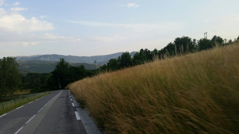 After a top-speed, swerving ride over a mountain, interupted by a flock of sheep, we stay somewhere in the Alps-Martimes.