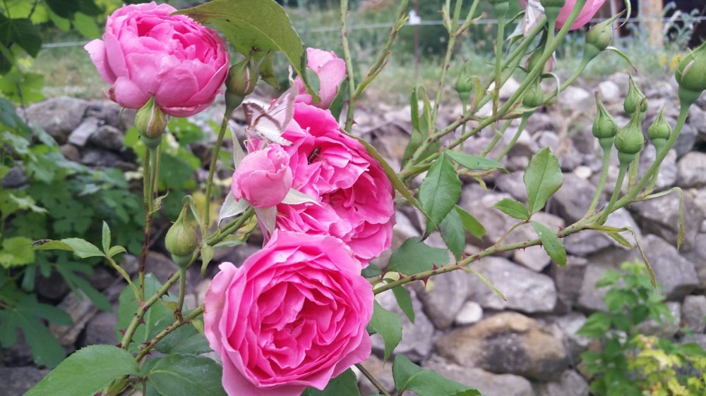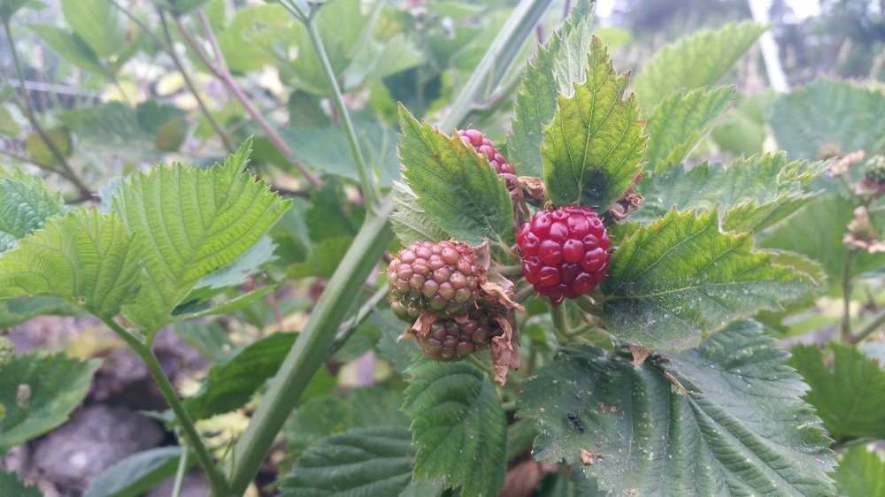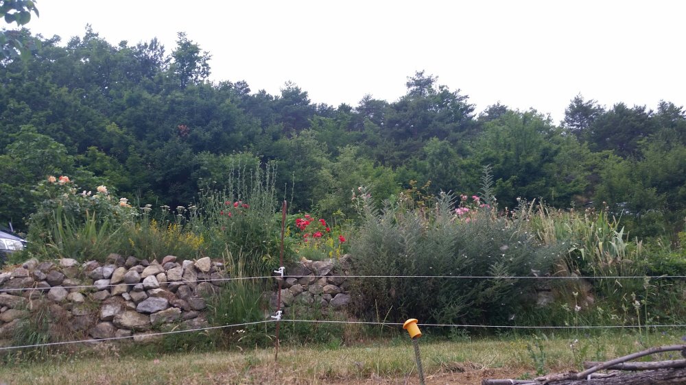Quick meals of just bread and vegetables, then back out to weed the raspberry patches and clip huge, vicious brambles away from the fence line. I get the feeling she has been saving this work all spring for our visit.