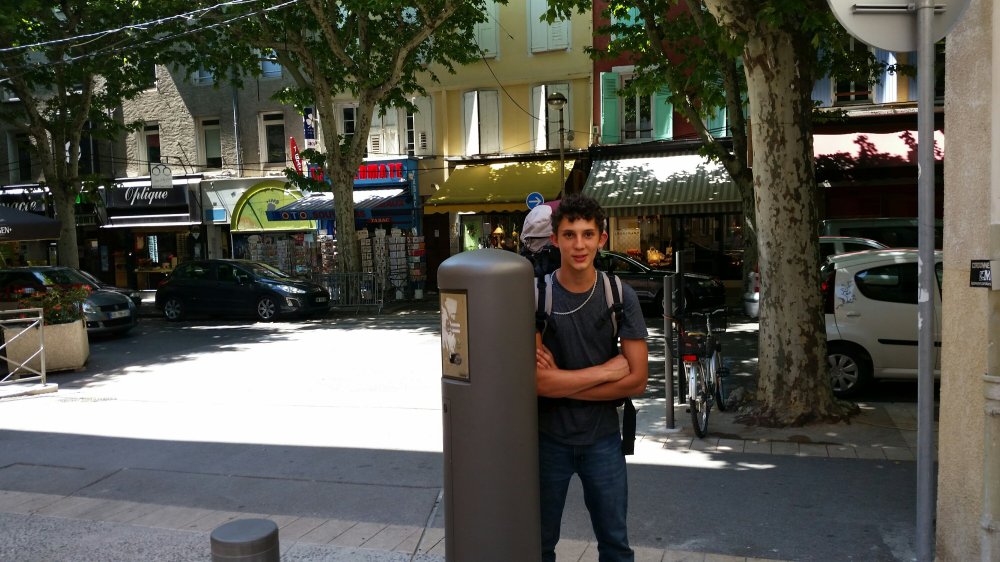Problems with railroad near Digne make it necessary to take a bus at St. Andre. The Teenager watches stupid things on his phone and is innocently unaware of harrowing bus ride threading through tiny horsecart streets and neck-wrenching turns on mountain roads with no guard rail.