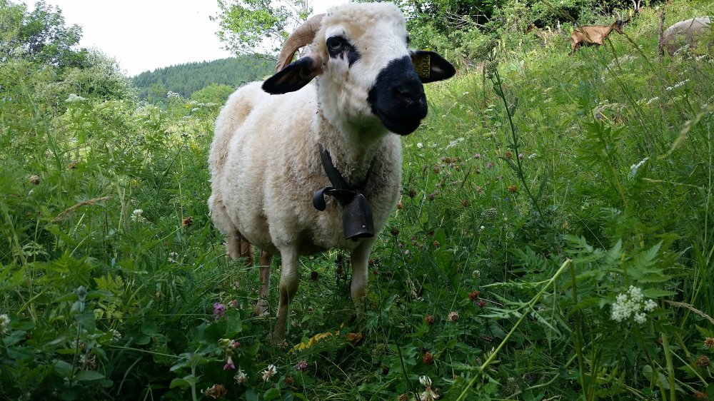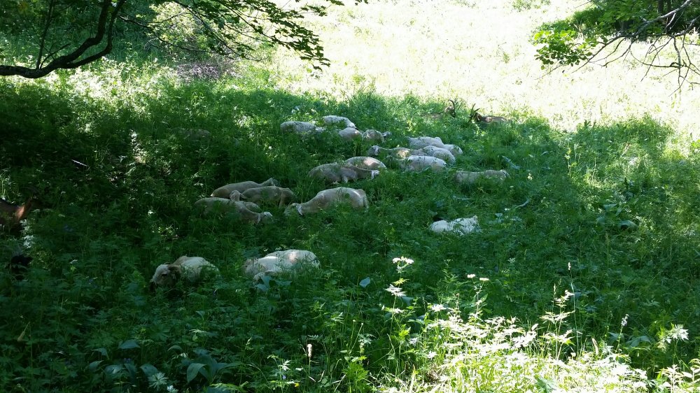 There are 41goats and 57 sheep to look after in a large paddock of about 5 acres on the slope of the mountain, a difficult terrain with rocky hills and trees that obscure the whole enclosure. Sheep bells ring in different tones as we clamber up the steep path.