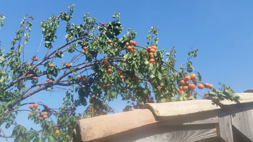 For the first time we have tasted ripe apricots off the tree. There are two teenage girls here about the same age as the Teenager, and he has actually been interacting with them and learning a few words in French like “sorry” and “stop, you’re mean,” when they play tricks on him and he throws apples back, or picks them up and pretends to almost toss them into thorn bushes while they squeal and smack him.