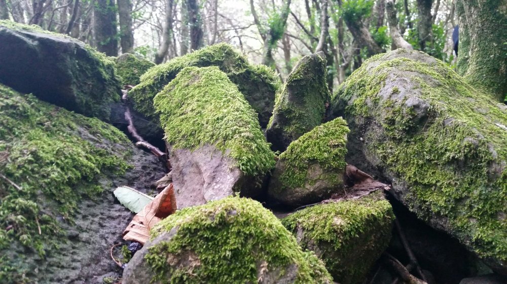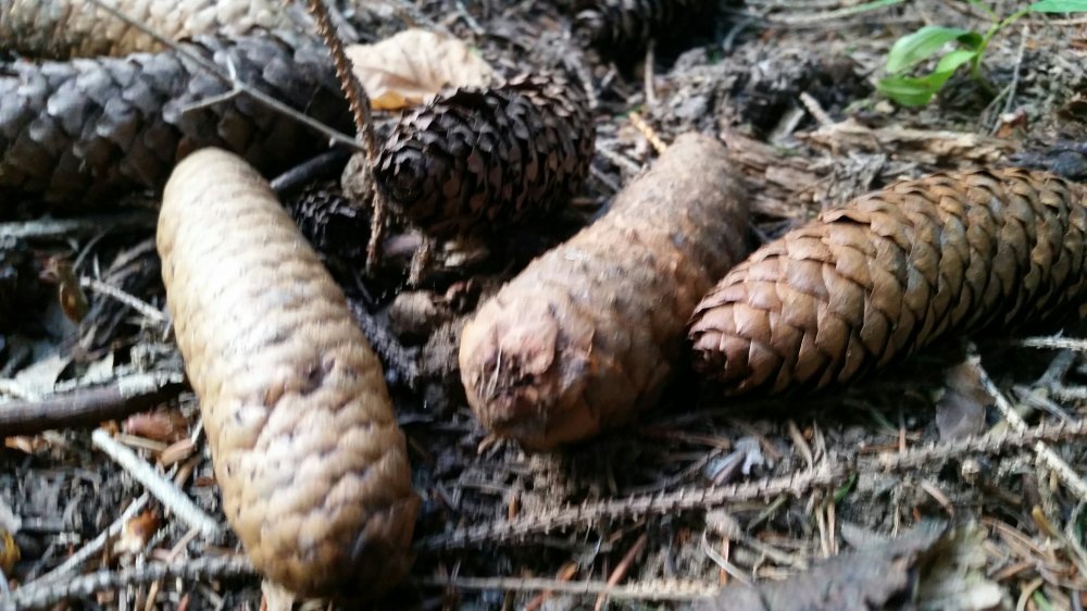 The forest is littered with smooth, narrow pine cones, and the rocks glitter with hidden twinkles in the sunlight.