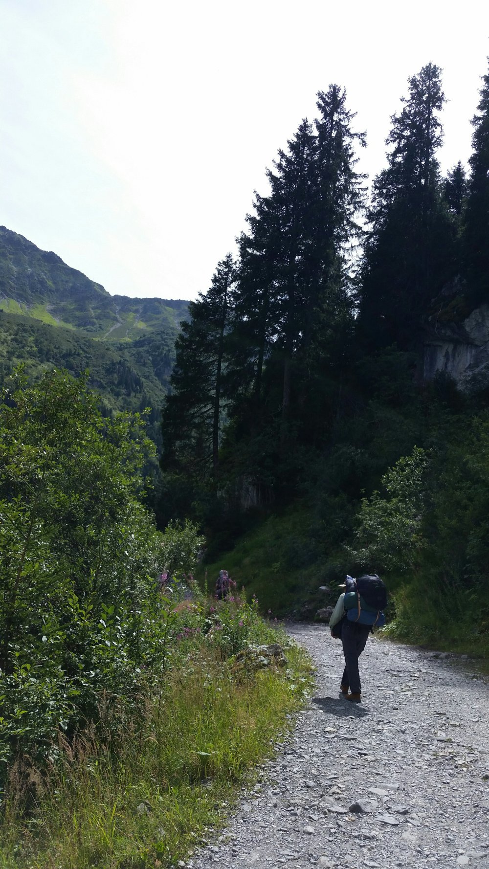 It was grueling, and the path was packed. It seemed like everyone and their sporty girlfriend were hiking there that day. Everyone passed us because no one else had as much stuff to carry as we did, and it had started dawning on my dad that we were way overloaded. I had switched back to my pack because the frame of the other one had bruised my back.