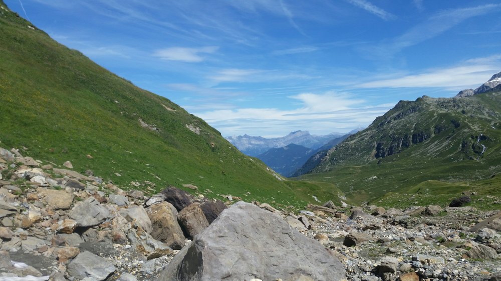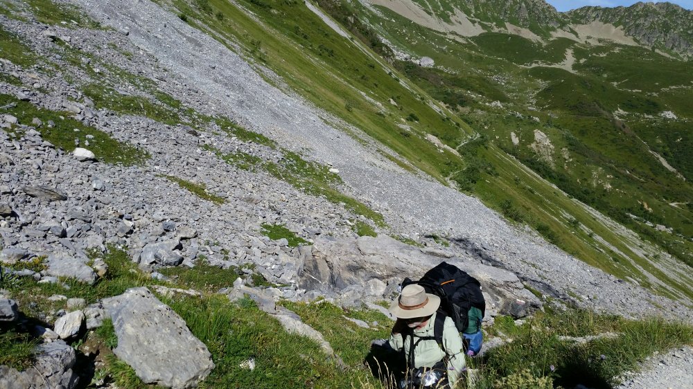 I stayed with my dad while he rested, and took his camera bag for the next part, which required free hands to grab the rocks it was so steep.I couldn’t believe how heavy it was. The strap dug into my shoulder and was exhausting just a short way up to the Col de la Croix. Why he thought it was a good idea to lug it along on a 110 mile hike up the alps is beyond me.