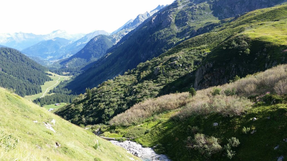 Down below there was a refuge and when we arrived we smelled delicious smells and people were sitting at tables finishing plates of food, so we got our hopes up for a hot meal, but when I asked at the desk they said the kitchen was closed for the day (at 4:30pm for some mystical reason) and advised us to hike (only 2 hours! ) down to the tiny town of Les Chapieux.