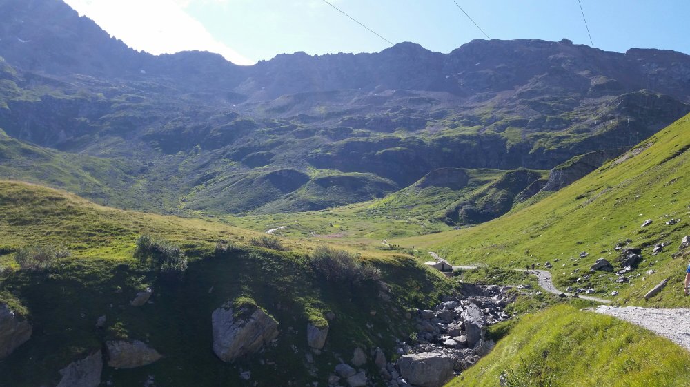 Very, very slowly we crept up the mountain, leaving the trees behind and coming out into open alps, long gorgeous stretches of wildflowers with tricking steams and the dusty blue mountains sharp in the distance. It was beautiful, but all the crowds rushed past as fast as possible.