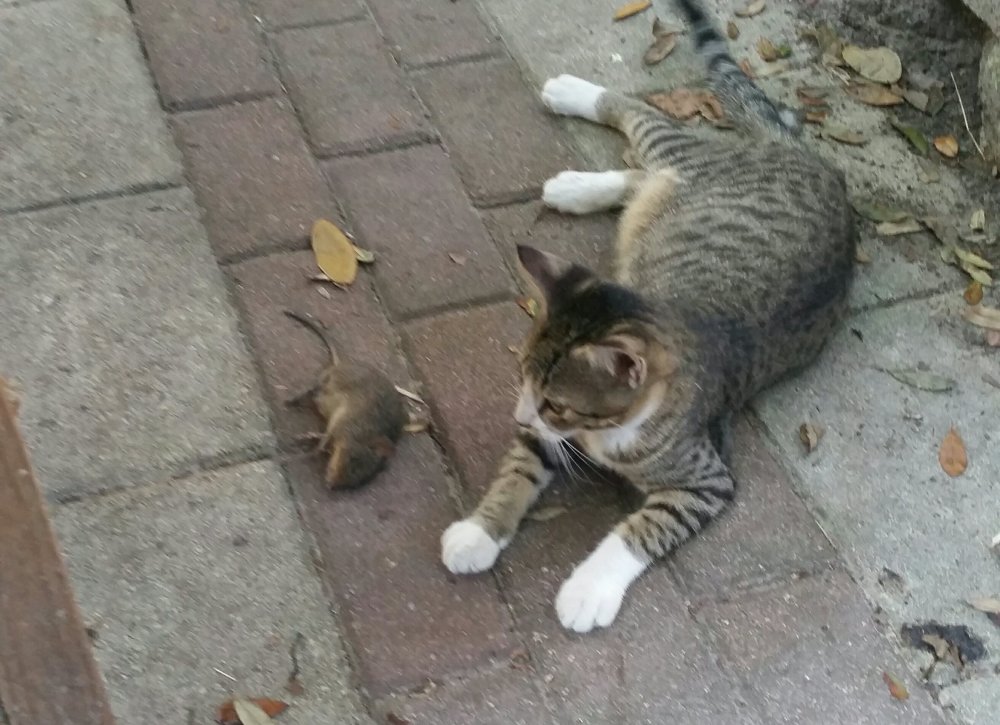 Something really awful happened yesterday. Our cats are great ratters, and one of them (I presume) had dragged a fairly large but scrawny rat out of the barn and left it on the patio.(Not the same rat in the picture).