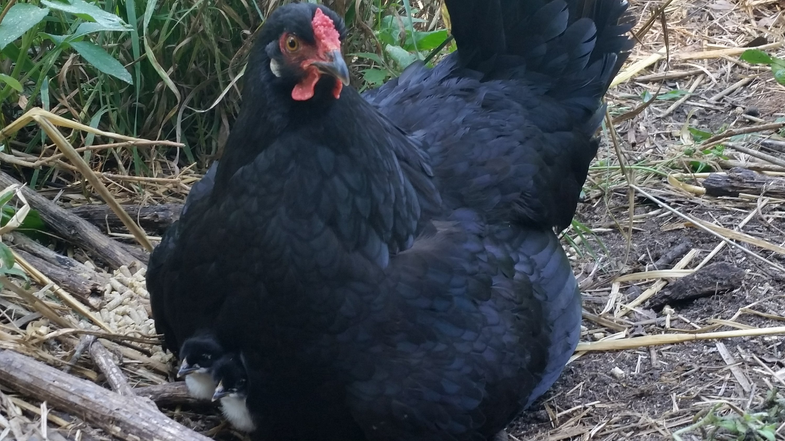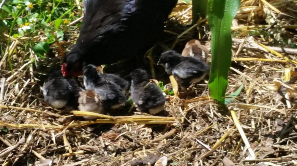 This year we failed again to keep the wild chickens from becoming exponential. First one little chick came out of somewhere and added to the cuteness out here.