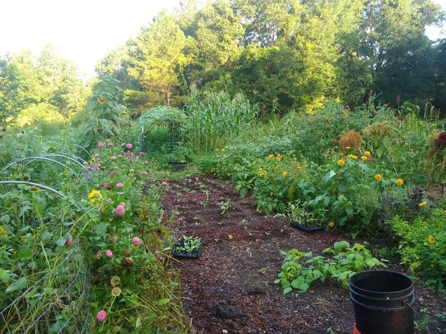 Everything is blooming and fluttering with butterflies once the dew has dried in the morning. I am still re-mulching paths and weeding, although usually i have given up on it by now and i let the jungle fully take hold.
