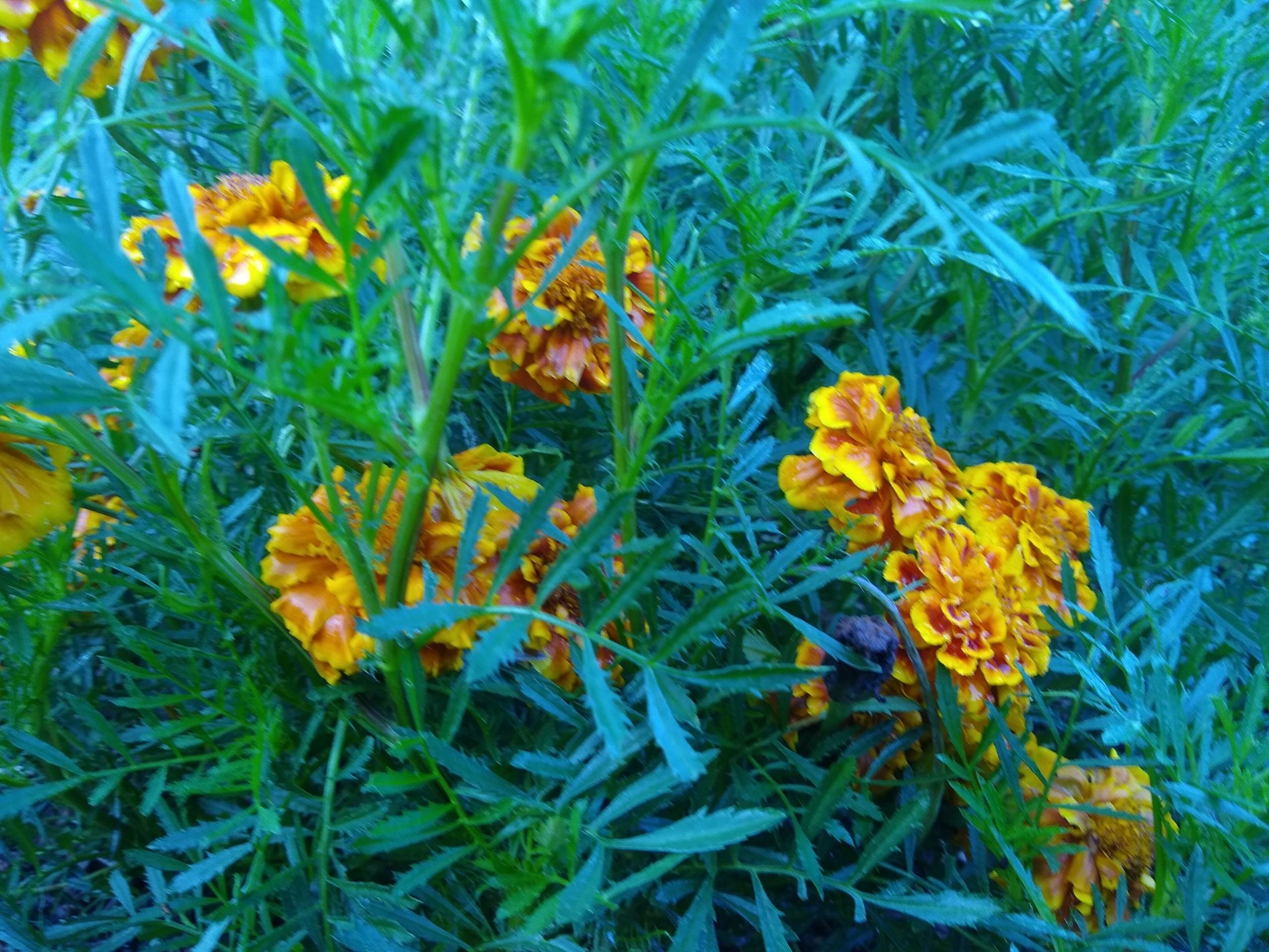 The garden is still beautiful, even in the middle of summer. This year it has been the fullest occupation of my days, and i have taken care to pull out the dead and dying plants and replant things that love late summer – okra, eggplant, sesame, basil, hot peppers, Seminole squash, cow peas, marigolds, celosia, zinnias, tithonia, and orange cosmos.