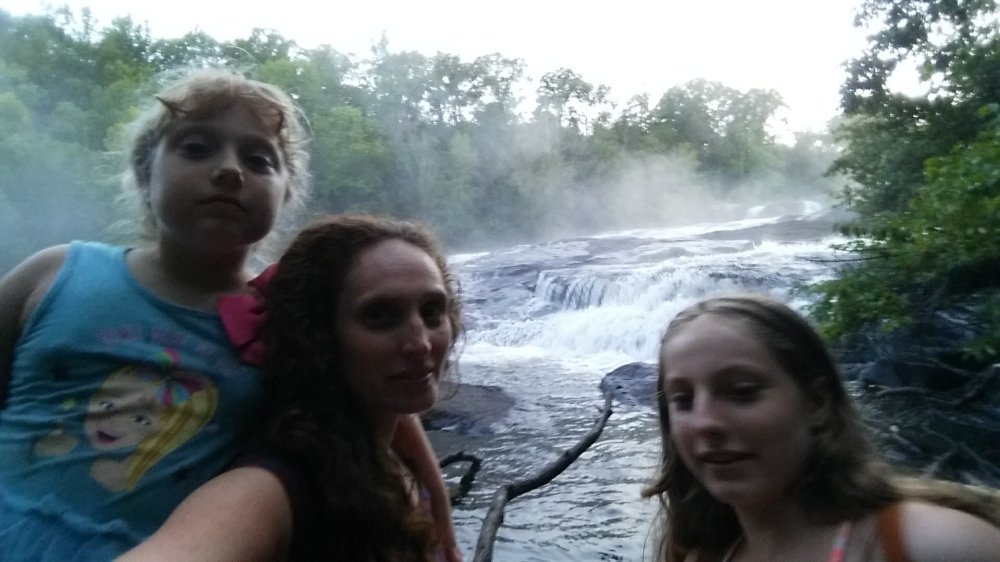 When we arrived at High Falls, it had clearly just poured like crazy and was still drizzling. When it seemed to be mostly cleared up we hopped out and began to struggle with our new tent.