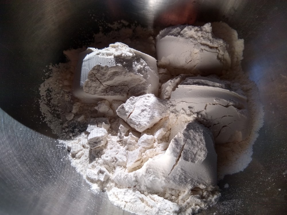 I have 2 methods here for the wrappers – with a food processor, and by hand (I didn’t have a food processor for years, so I appreciate by-hand recipes. Plus a friend whose grandmother made this kind of dumpling by hand thought the food processor was kind of silly. It is superfluous – and I always prefer old-fashioned recipes!). I made 2 batches of dumpling dough side-by-side, one by hand and one in the food processor. They looked slightly different at first, but they worked equally well for making dumpling skins. The ingredients are the same: