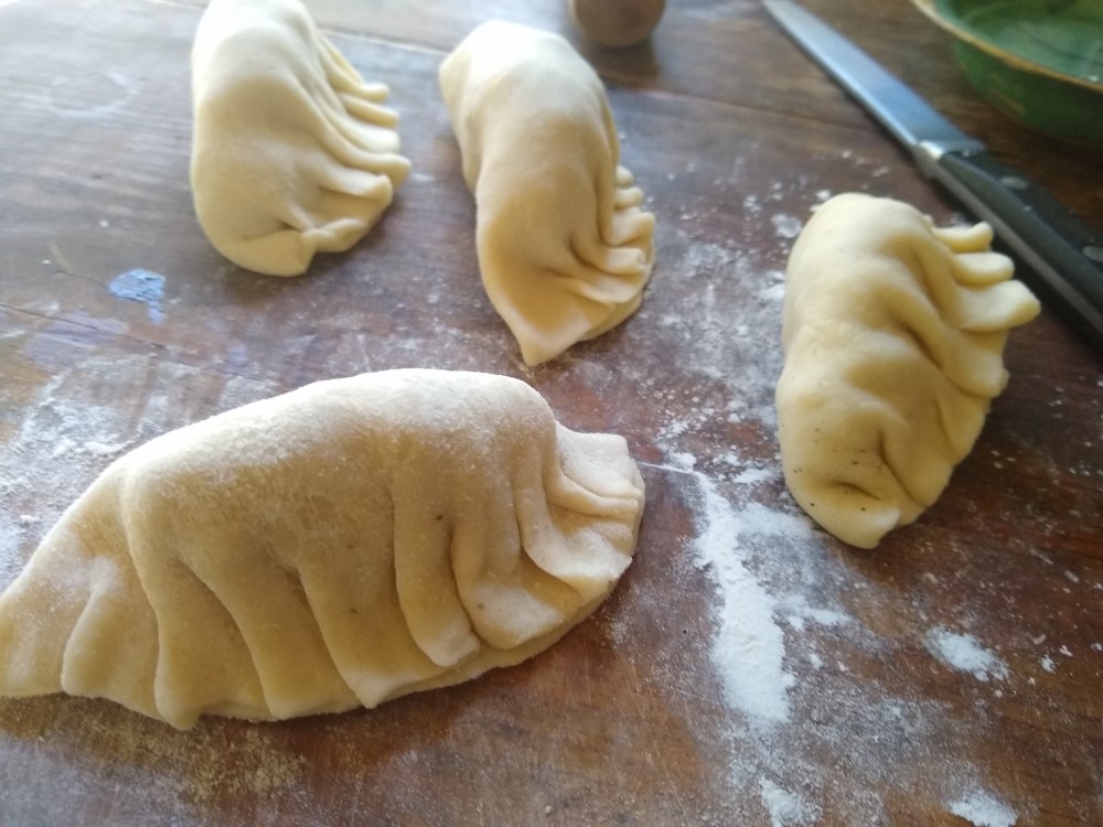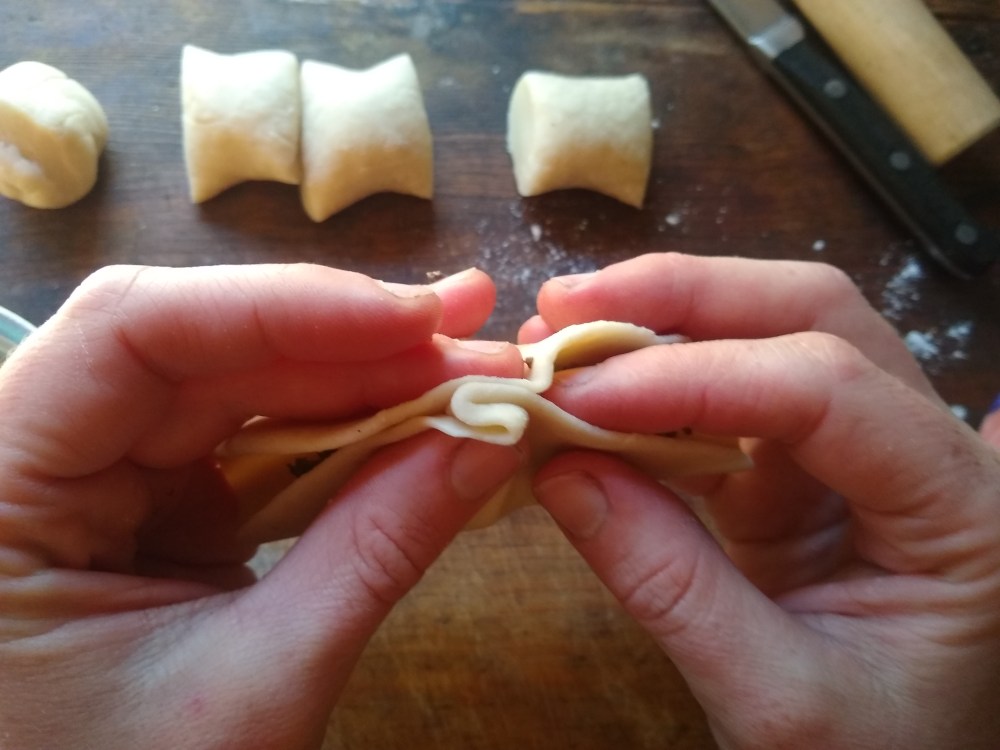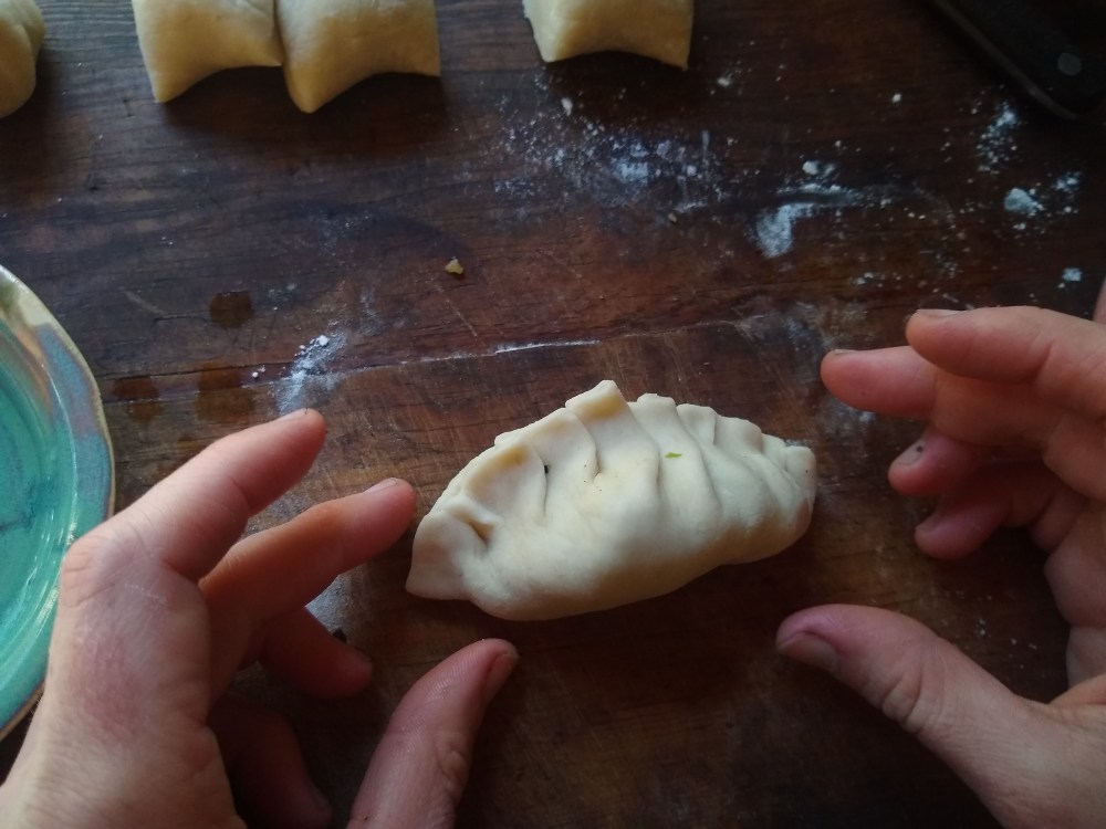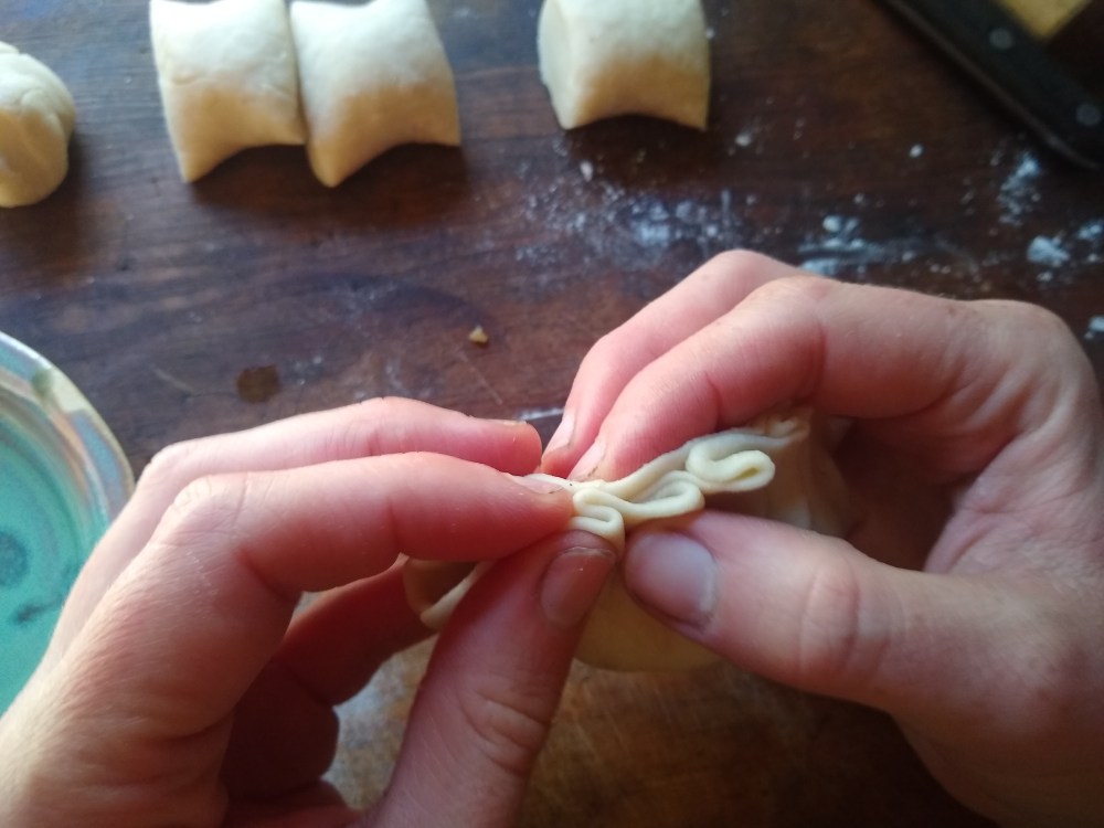 Here follows a LOT of photos, detailing perhaps a tricky (not really) procedure in crimping the dumplings. This post was a hard to photograph – I had to move my whole kombucha experiment off the kitchen counter to make space!
