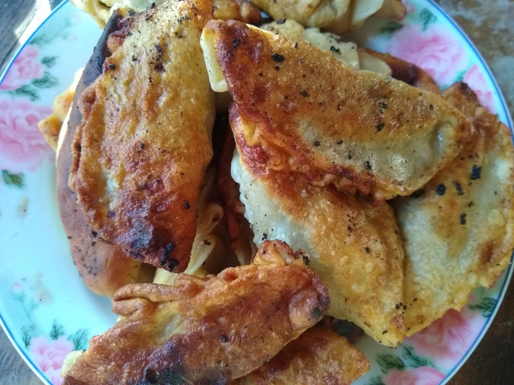 If you end up with more dough than filling, you can roll it out and cut it into strips and fry it. It’s delicious dipped in Honey Roselle BBQ Sauce, or home made egg drop soup.