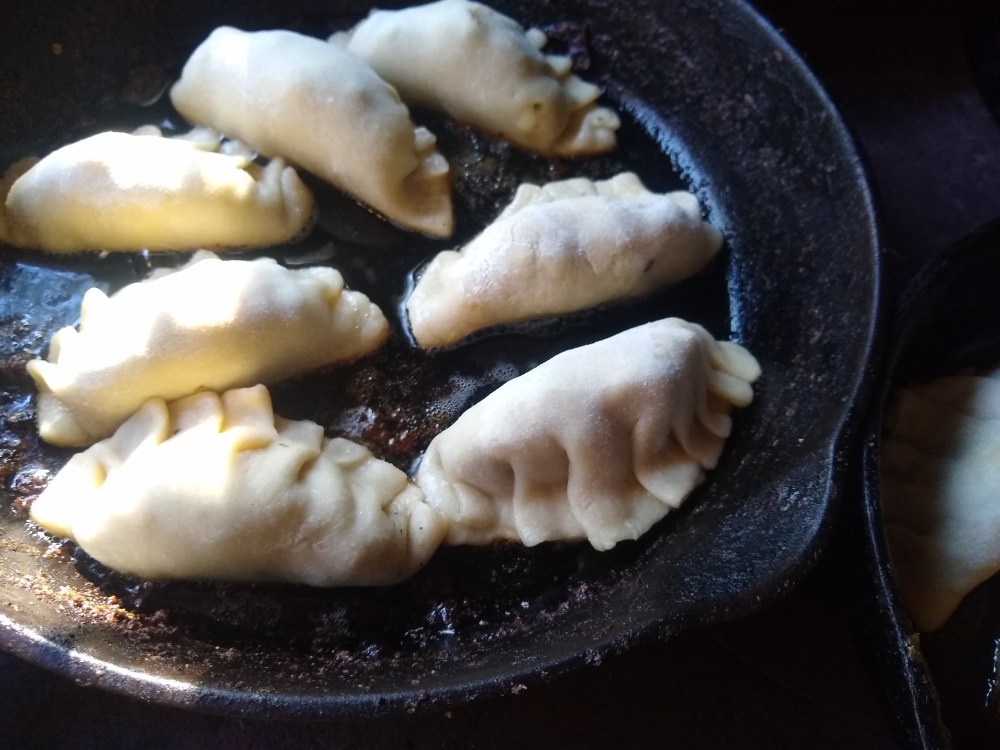 Frying is quite easy. Simply heat lard, or a mixture of coconut and sesame oil or some cooking-quality-but-still-healthy fat, in a frying pan, and fry the dumplings on each side until they are crispy and brown: