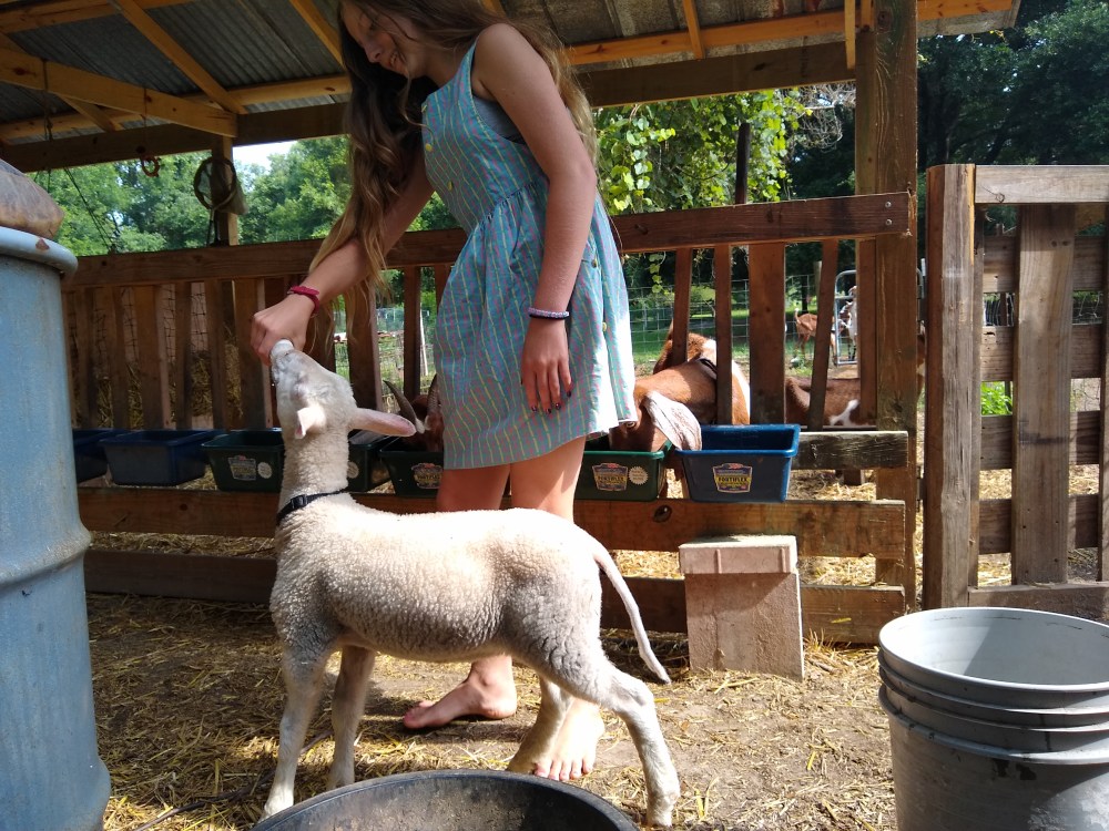 It was storming again when we went to pick up Hana, the second lamb. There was not much time to judge her character – we assumed she was just like Daisy, who walks in the kitchen if the door is open, and loves to have her back scratched. But Hana was not like Daisy. She bit Clo’s finger on the way home (to be fair, Clo was doing something to her ear and had put sunglasses on her).