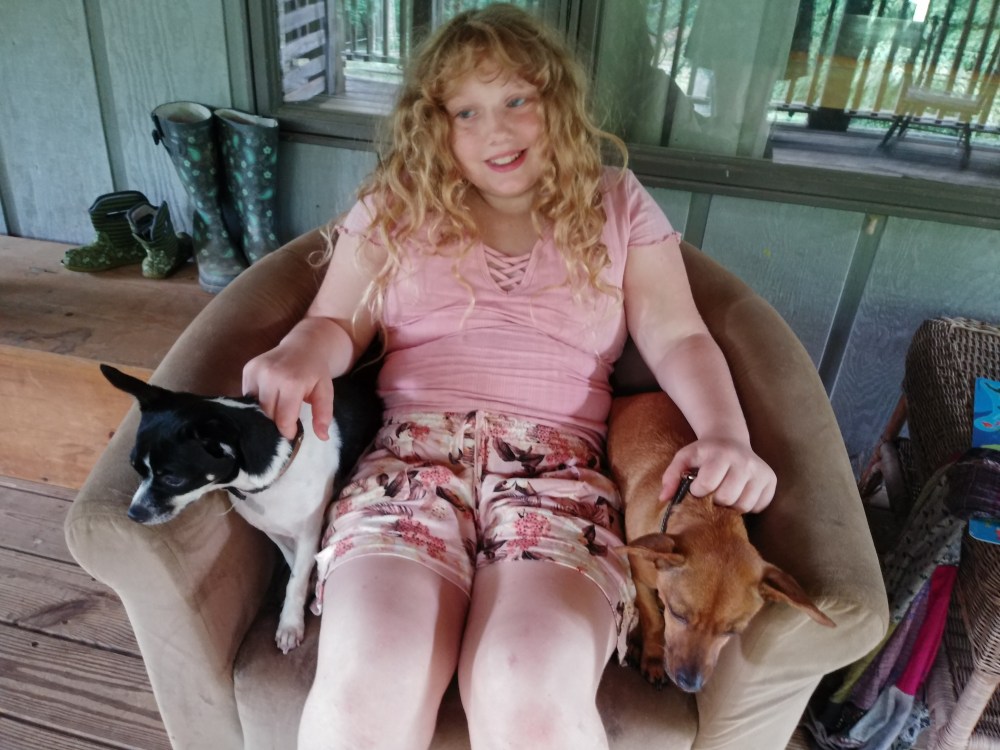 There are two great little dogs who live there, who Clo had tons of fun with. And goats!