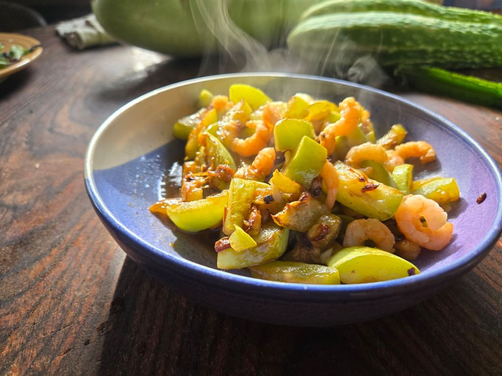 Stir-fried Cucuzzi Gourd With Shrimp
