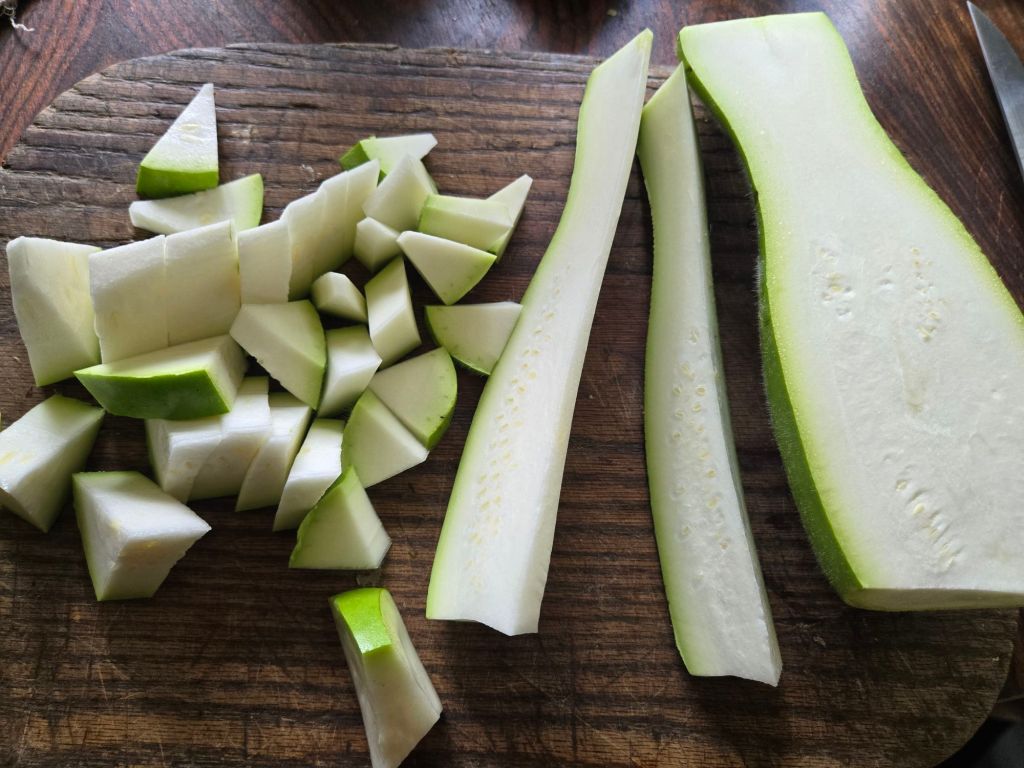 1. Slice the gourd in half and cut into 1/8 inch slices.