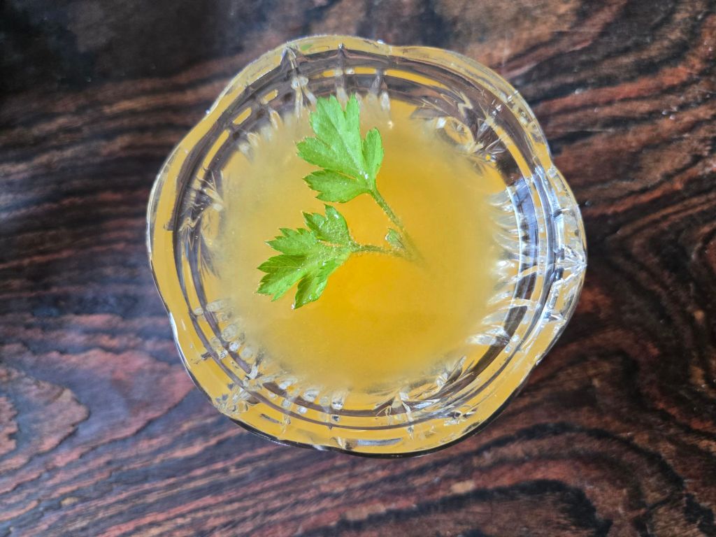 Pour over ice. Garnish with a mugwort sprig, put your feet up, and enjoy!